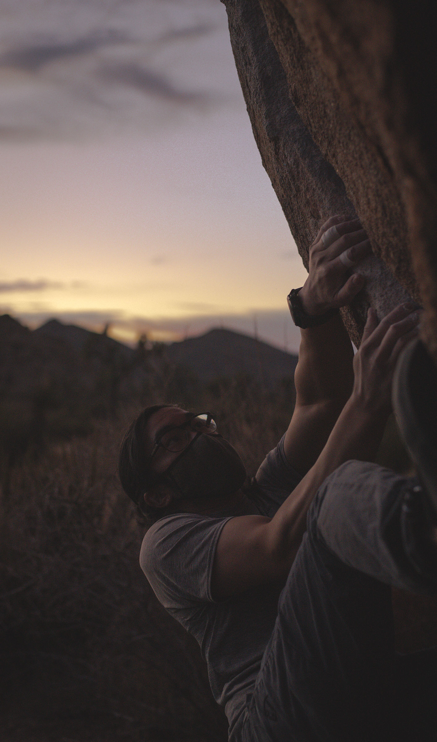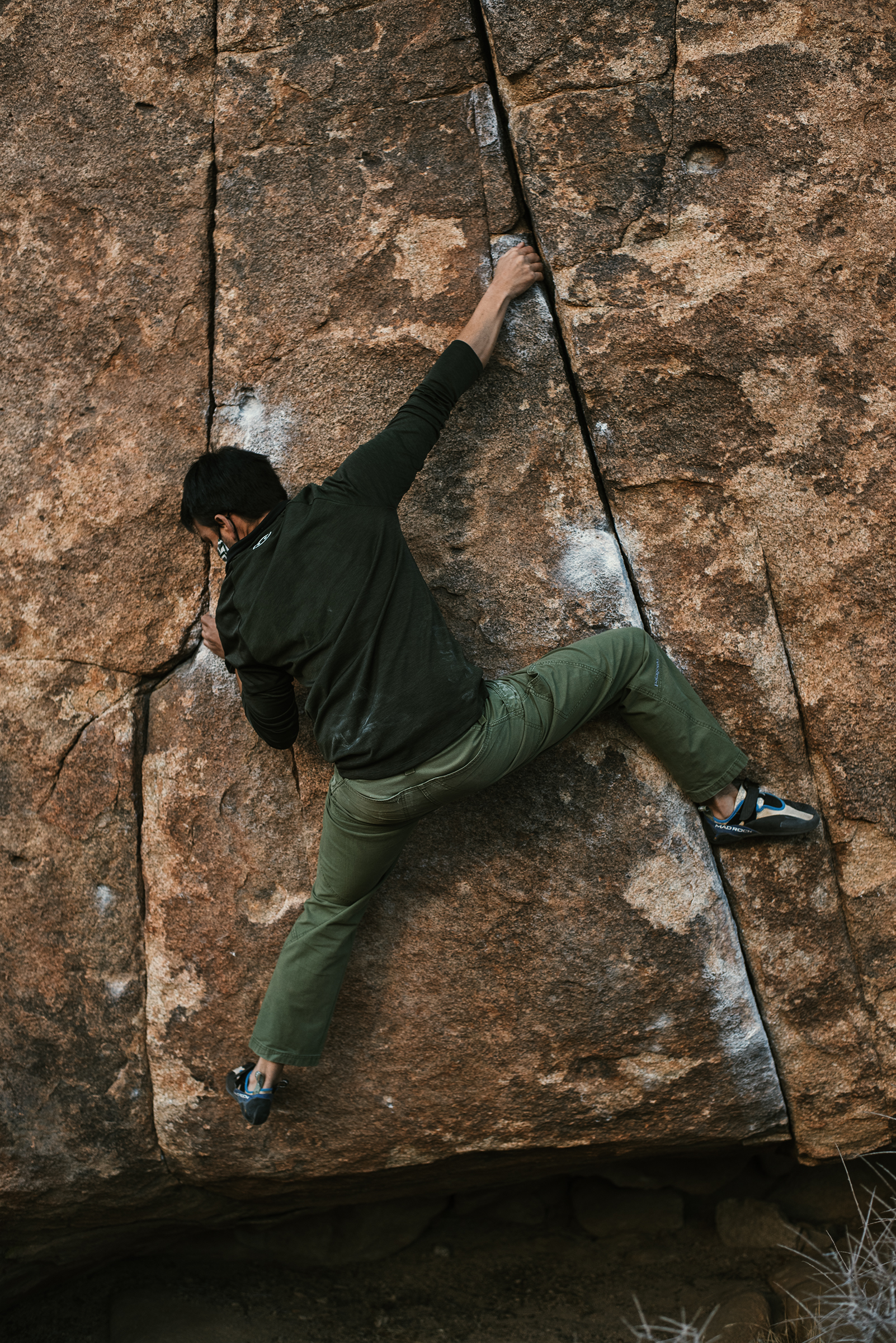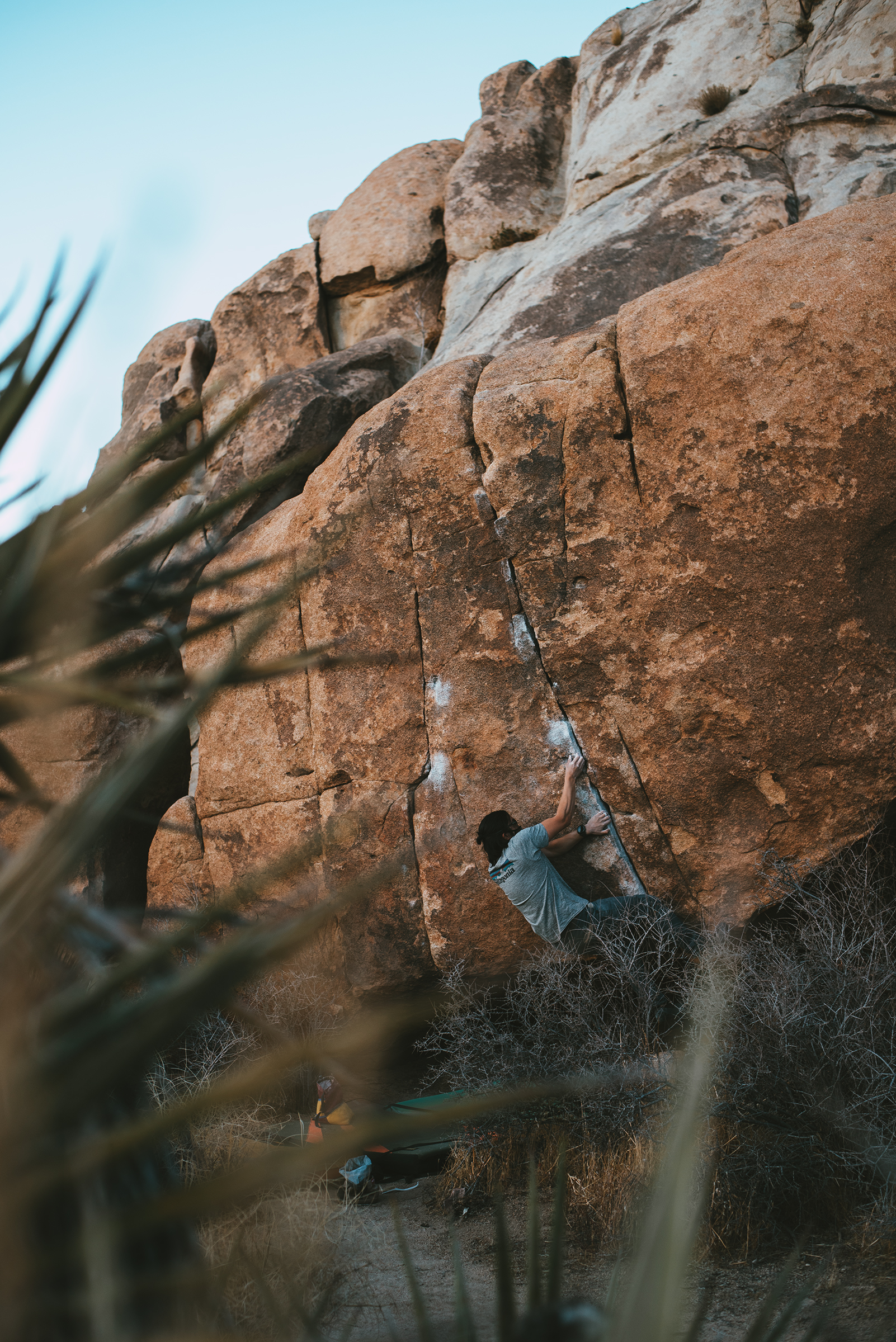 Made a quick trip over to Joshua Tree this morning to meet up with Ilia and Olya who were road tripping around the West. Walked around a lot, hopped on a bunch of stuff; notably Penguins in Bondage (V4), and the False Hueco boulder traverse. Couldn’t send shit, felt tired all day. Still, it was great to get outside, hang out and touch some rock; was in the moment so much I hardly picked up the camera.
