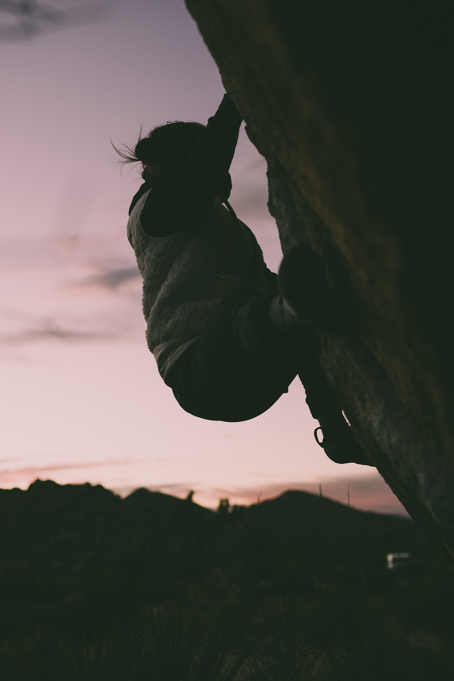 Our impromptu trip to Black Mountain turned into a late night trip to Joshua Tree after we discovered the road to Black was still closed for Winter. Sort of a bummer, but also not because I didn’t get a rock in my eye this time. I also sent Roof Romp (v4). It was also Duane’s first time climbing outdoors. Kristian took the photos of me.